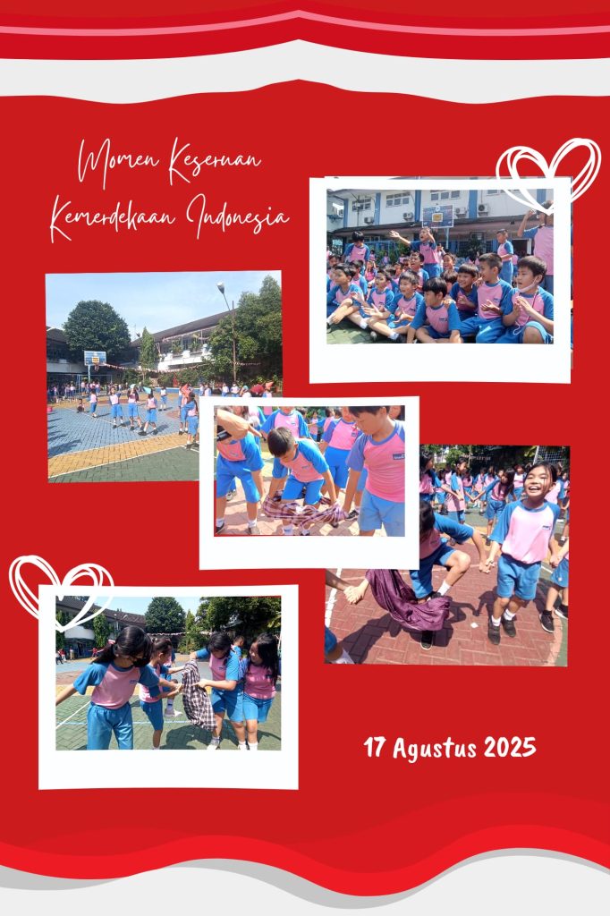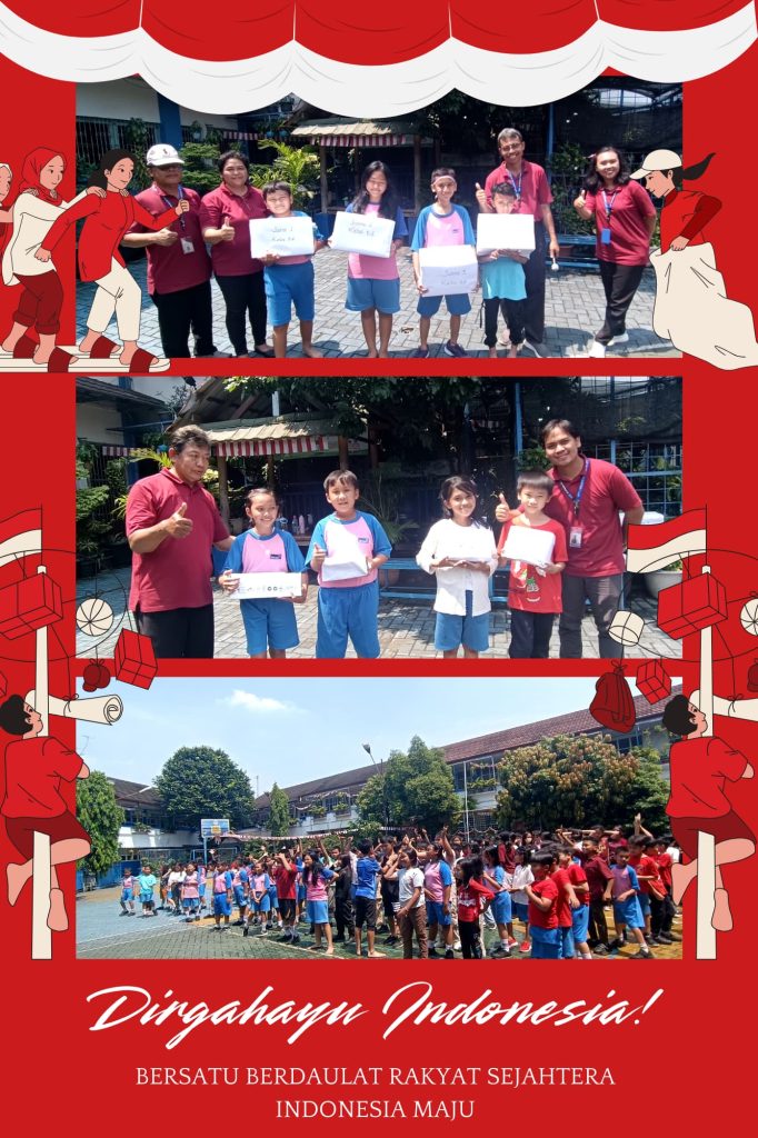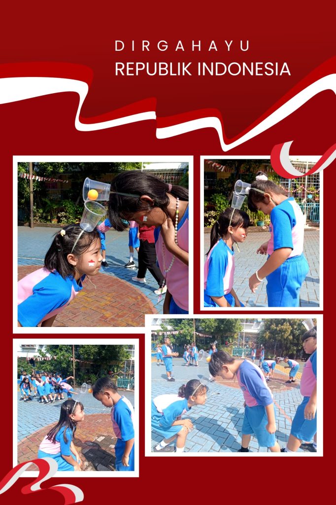 Setelah potong kue, acara dilanjutkan dengan lomba Agustusan untuk semua kelas dari 1 sampai 6. Ada lomba estafet bendera, estafet bola ping pong, dan estafet sarung. Lewat lomba Agustusan kita belajar sportivitas, kerja sama, dan semangat juang, seperti nilai-nilai yang diajarkan para pahlawan kita dulu.